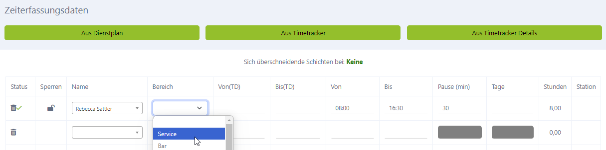 Die Schicht muss bei dem Mitarbeiter bereits eingetragen sein.