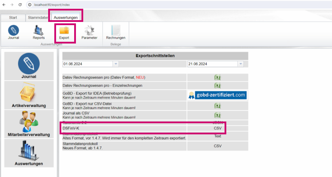 Die Kassenprüfer benötigen von dir den DSFinV-K Export. Hier hast du zwei Möglichkeiten, wie du an diesen Export kommst.