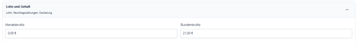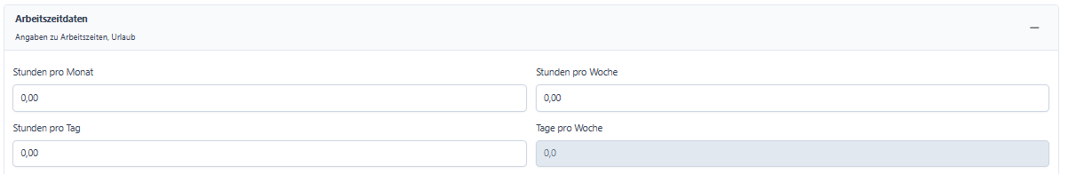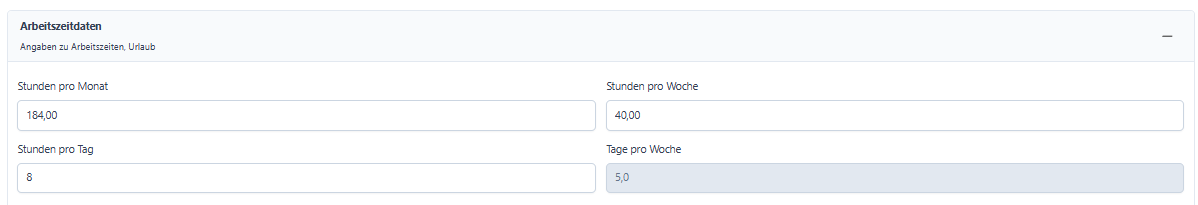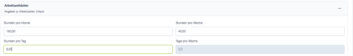 | Stunden pro Monat | Trage hier die Stunden ein, die der Mitarbeiter im Monat arbeitet, laut Arbeitsvertrag |