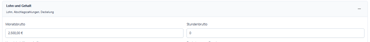 | Monatsbrutto - Festes Monatsgehalt | Erhält dein Mitarbeiter ein festes Monatsgehalt, musst du dieses bei Monatsbrutto eintragen.