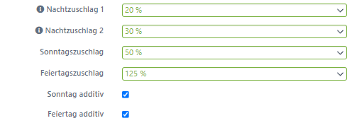 Hast du dich dafür entschieden, dass deine Mitarbeiter Zuschläge erhalten sollen, so musst du diese im Teilabschnitt für die Zuschläge eintragen.