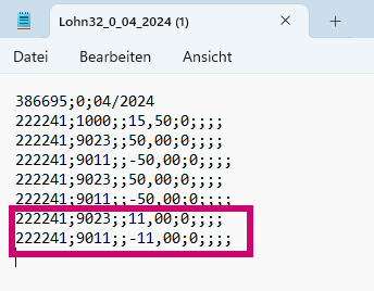 Beispiel hier, es wurden 11,00€ als Geldwerter Vorteil gewährt. Diese werden im Export für den Mitarbeiter übergeben.
