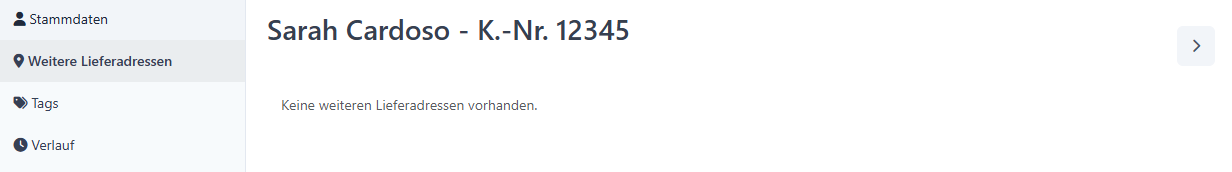 Im Reiter Weitere Lieferadressen siehst du, ob der Kunde eben weitere bzw. andere Lieferadressen genutzt und hinterlegt hat.