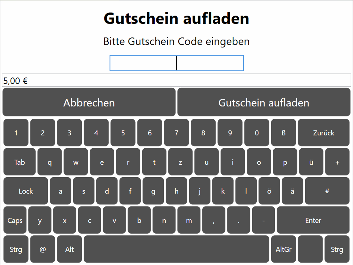 Mit dieser Funktion kannst du die Lokalen Gutscheine aufladen.