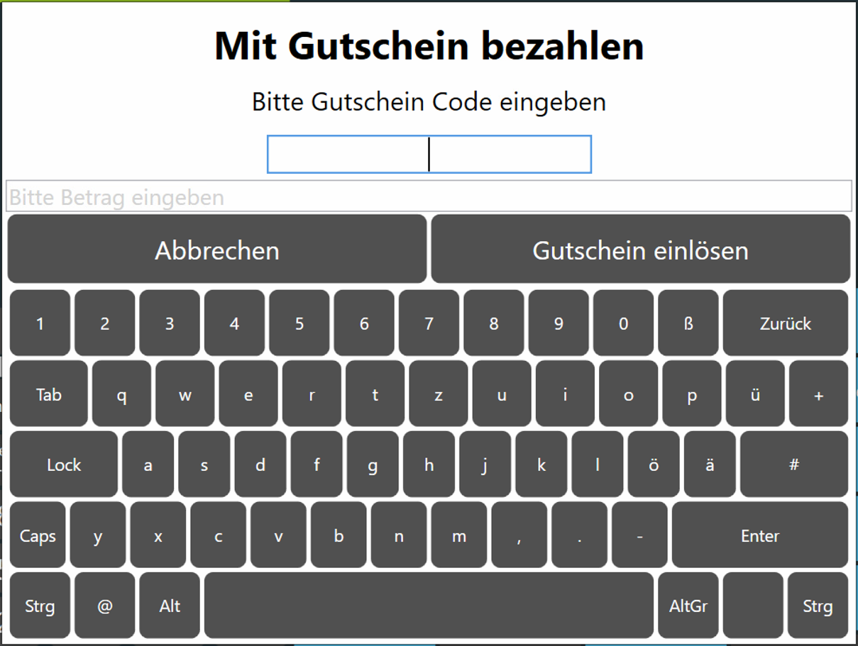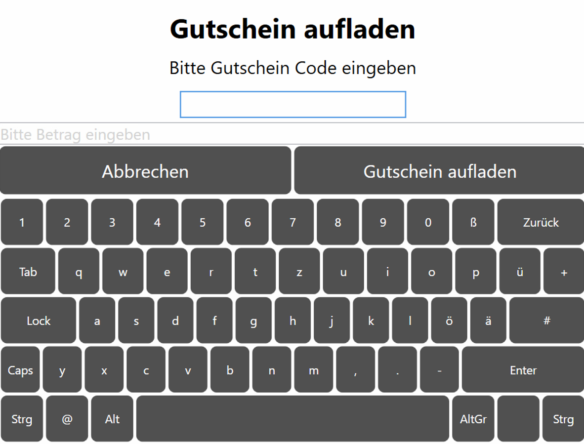 Mit dieser Funktion kann der Gast seinen offenen Saldo bezahlen, bzw. Teilbezahlen sollte der Gutscheinwert nicht für den kompletten Saldo ausreichen.