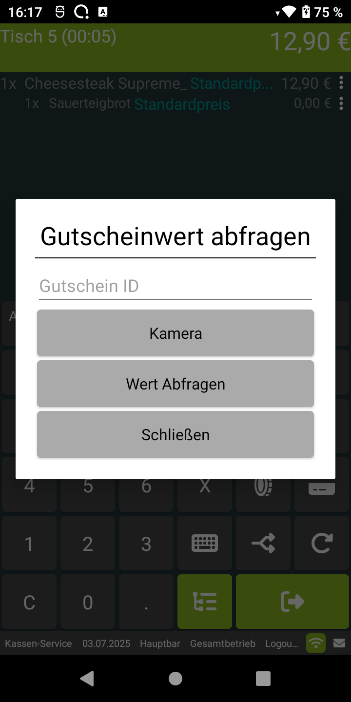 | Benötigtes Recht: | Anmeldung an der Kasse |
