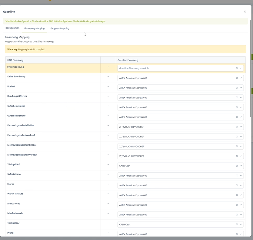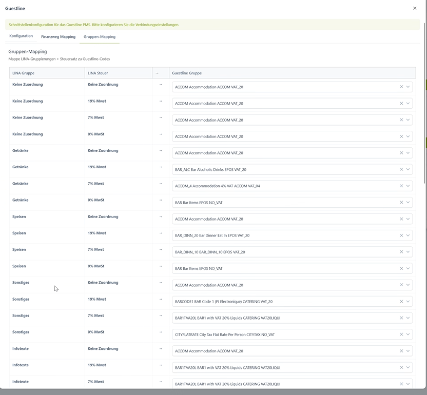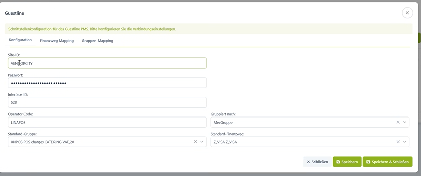 Mit Guestline muss abgestimmt werden, wann das System von Guestline den Tagesabschluss durchführt. Anhand dieser Information muss der Tagesabschluss in LINA eingestellt und vor dem Guestline Abschluss durchgeführt werden.