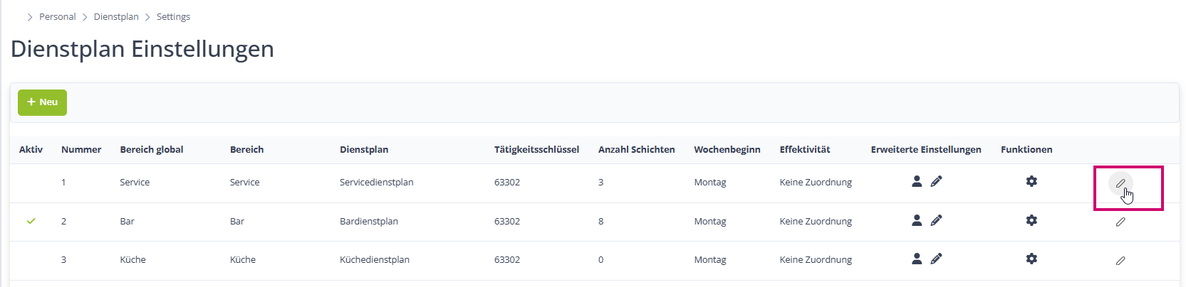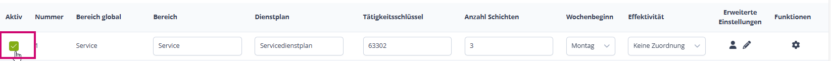 Wenn du den Bearbeitungsstift angeklickt hast, setzt du links den Dienstplan erstmal auf "Aktiv", damit er dir angezeigt wird: