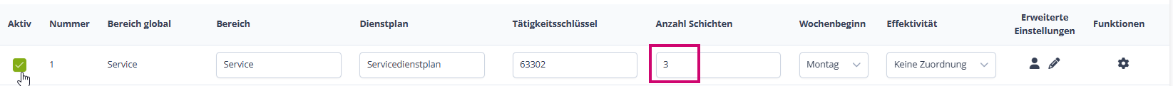 Möchtest du eine Kombination aus festen Schichtzeiten und Schichtzeiten die du bei dem Schreiben des Dienstplans definieren kannst, so trage eine Anzahl Schichten ein (Anzahl der unterschiedlichen Zeiten und pro Mitarbeiter in einer Schicht brauchst du auch eine Schicht. Arbeiten also zwei Mitarbeiter in einer Schicht, benötigst du diese Schicht doppelt):