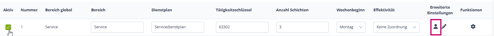 Grundeinstellungen Dienstplan
