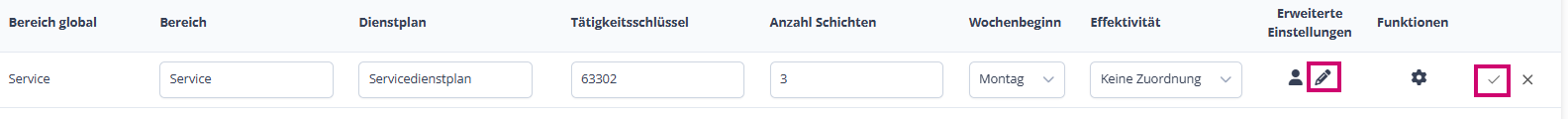 Haben wir diese Einstellungen getroffen, können wir nun entweder über den Bearbeitungsstift neben dem Männchen unsere Schichtzeiten eintragen, oder wir gehen auf das Häkchen ganz rechts: