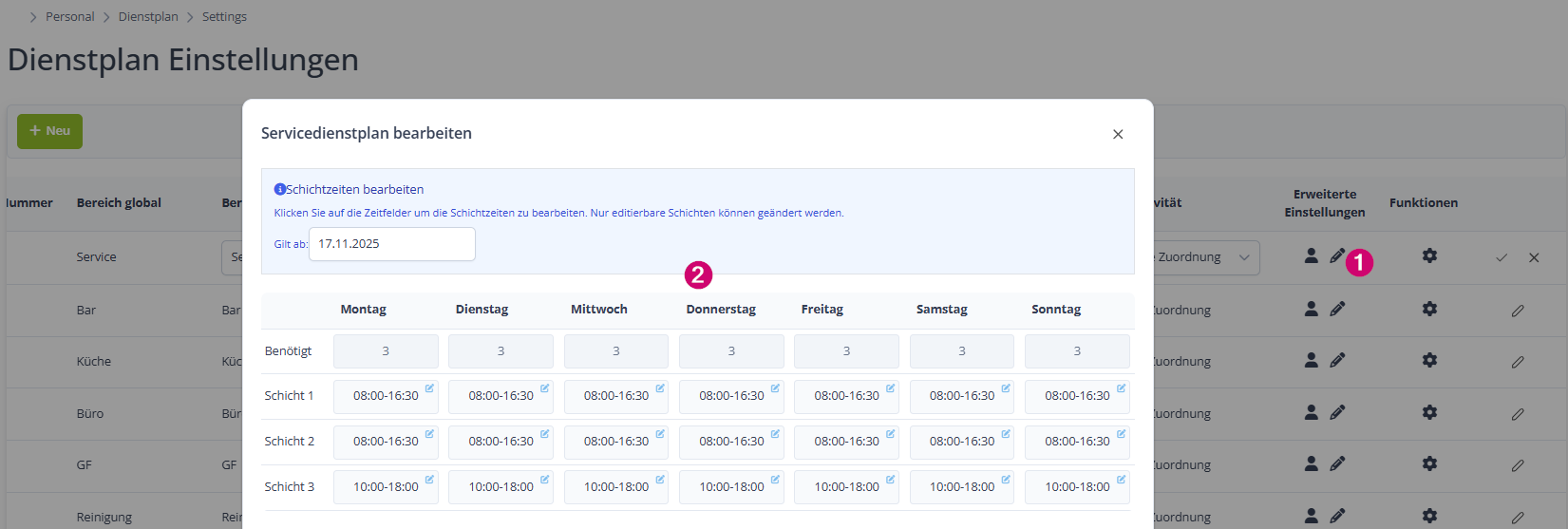 | Benötigtes Recht: | Dienstplan-Einstellungen verwalten |