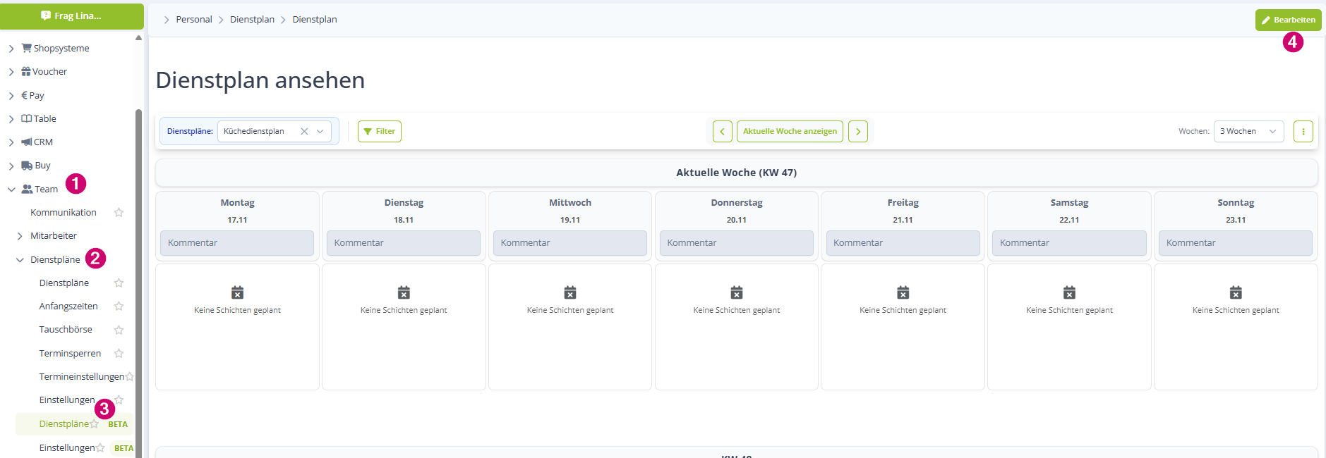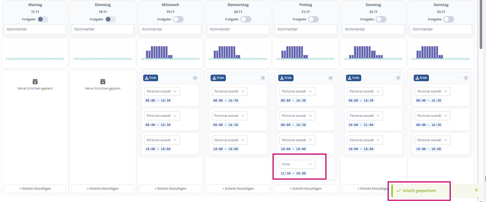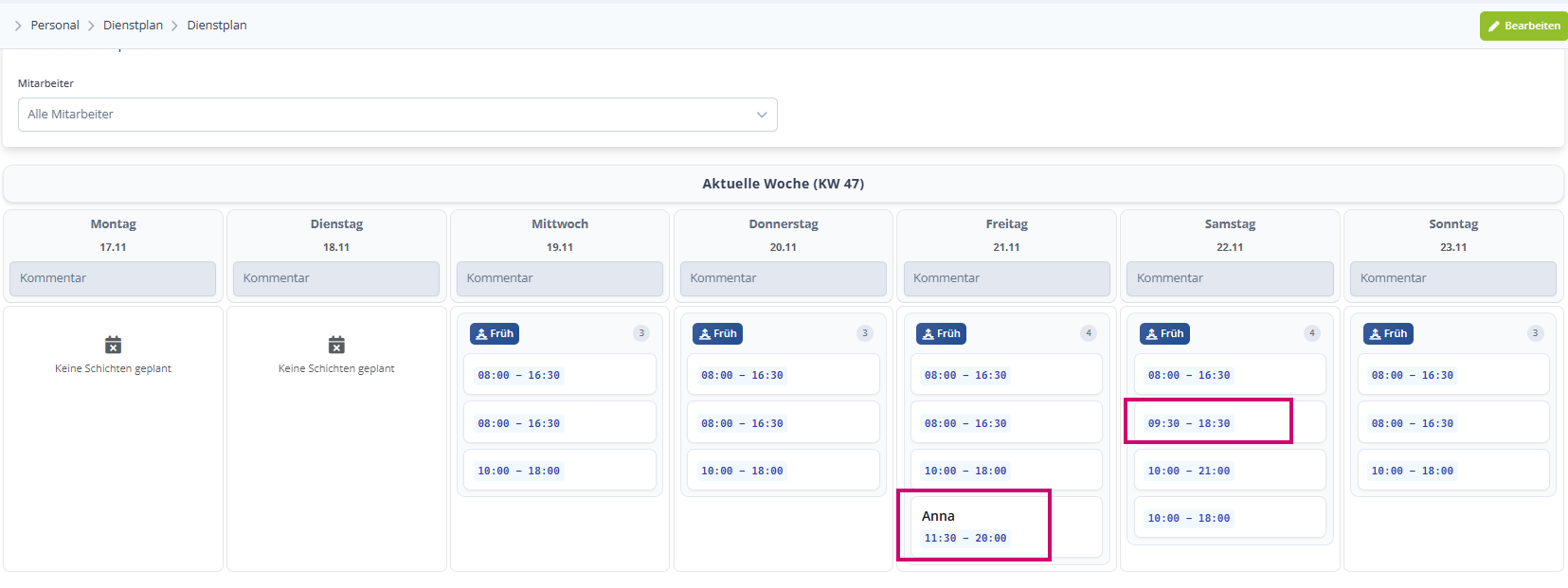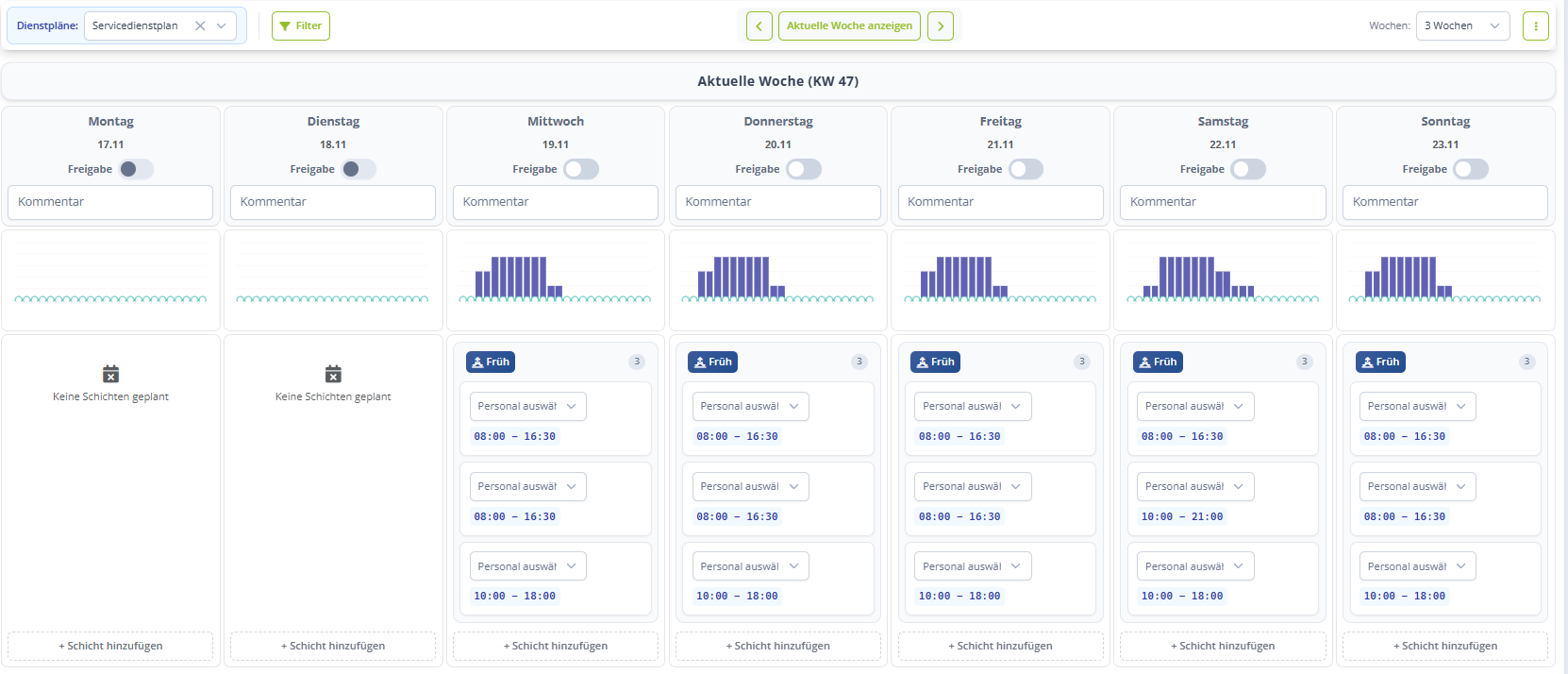Fahre so mit der Bearbeitung deiner Dienstpläne fort, bis alle Mitarbeiter eingeteilt sind bzw. deine Tage gut verplant sind.