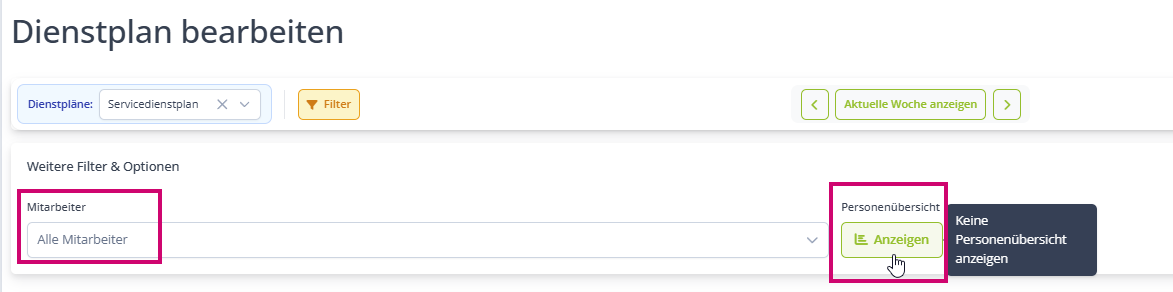Um den Dienstplan schreiben zu können, muss dieser zunächst Aktiv sein und du benötigst Mitarbeiter, die in diesem Dienstplan arbeiten dürfen.