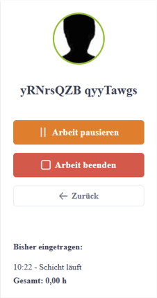 Arbeit beginnen: Dieser wird benutzt, wenn du dich heute noch nicht eingestempelt hast.