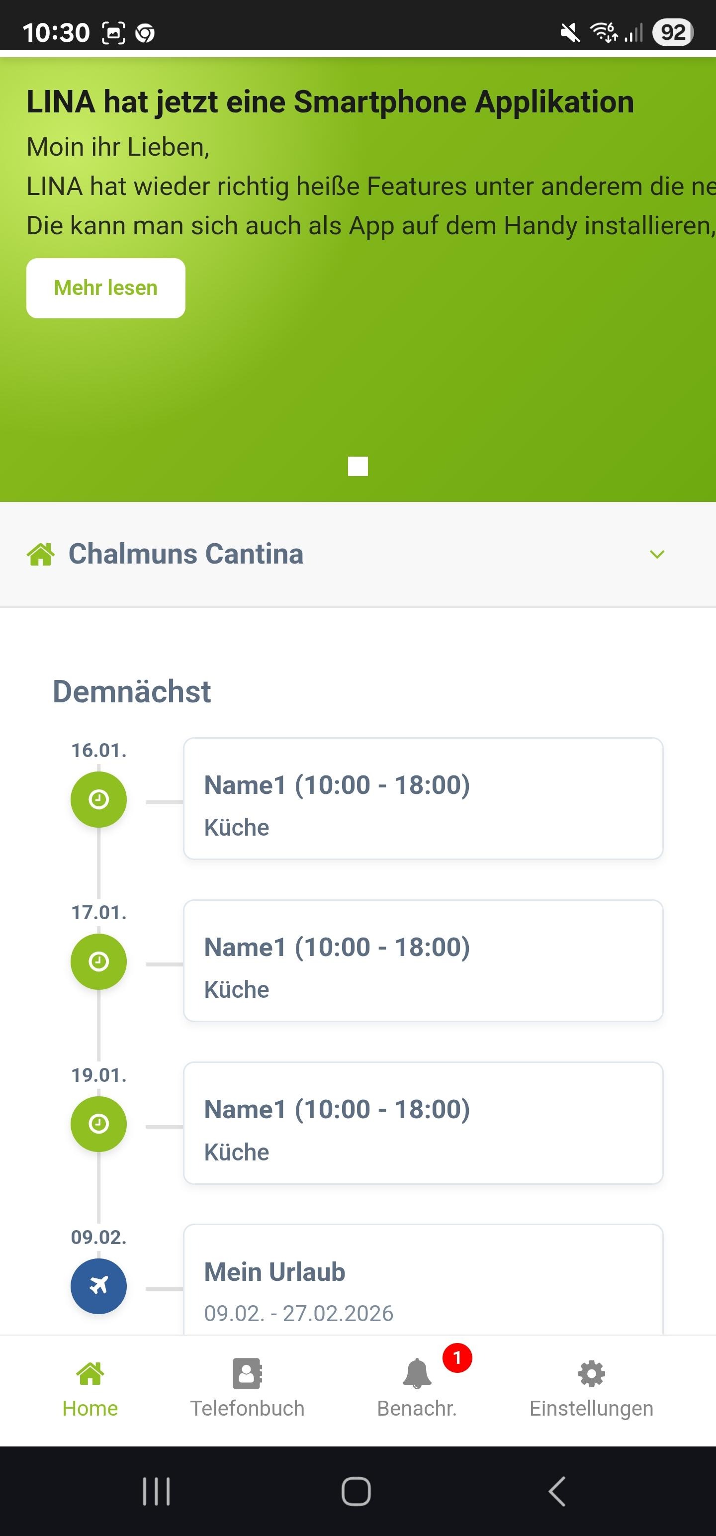Unter "Demnächst", siehst du deine nächsten Schichten oder den nächsten Urlaub.