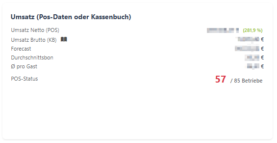 | Umsatz Netto (POS) | Der Netto Umsatz der Betriebe deiner Franchise. Der Prozentsatz ist der Vergleich in Prozent zum Forecast. |