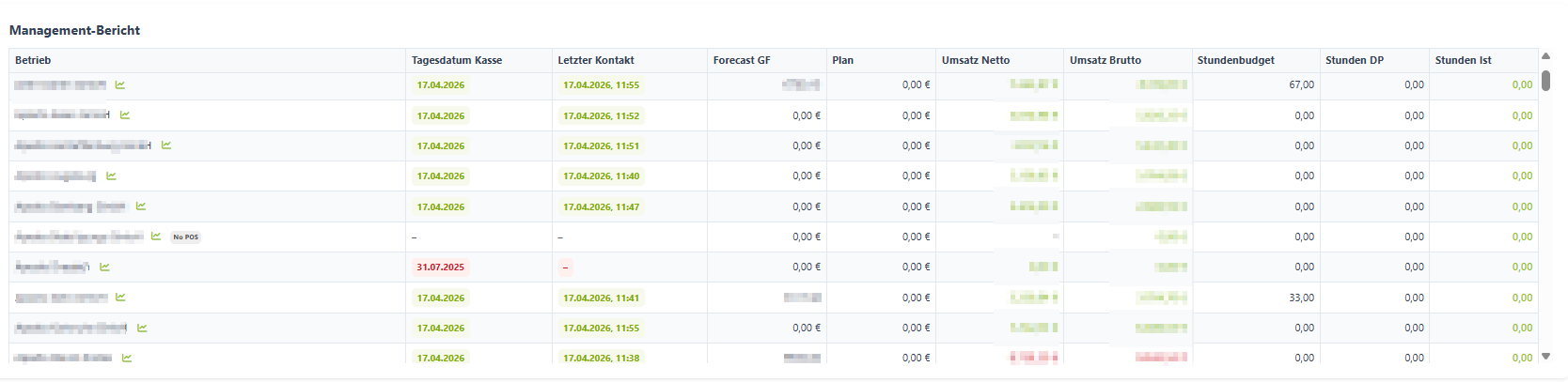 Im Management-Bericht erkennst du Die wichtigsten Kennzahlen deiner Betriebe.